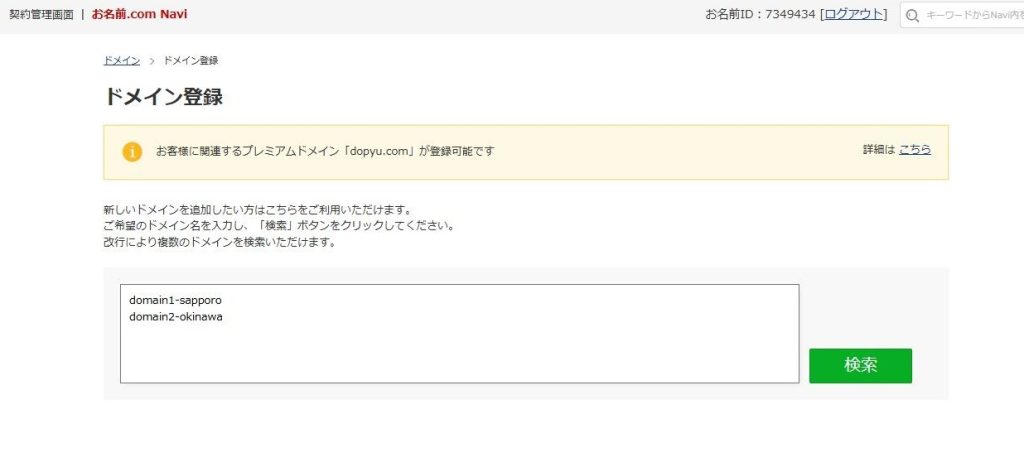 お名前ドットコム(https://navi.onamae.com/domain/search)で、