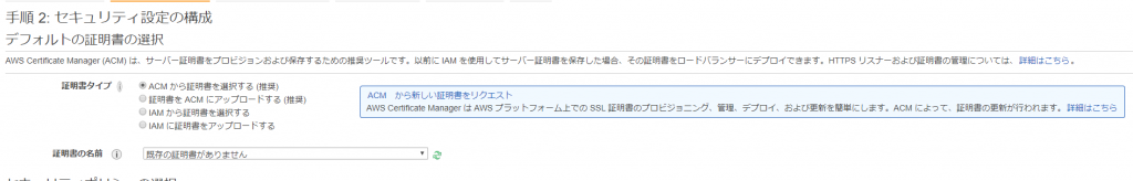 ACMから新しい証明書をリクエスト。 証明書作成したあと、ここに戻ります。(※1)
